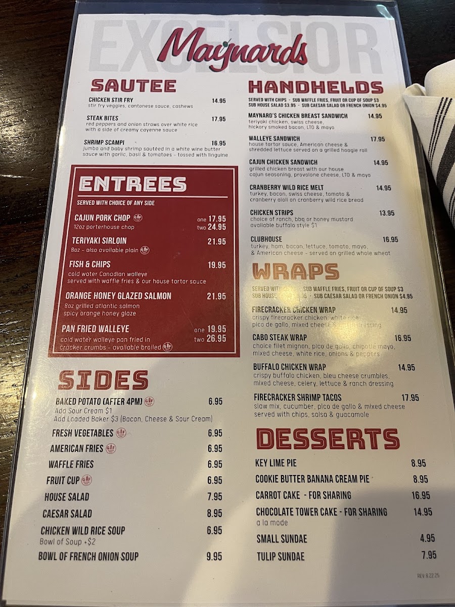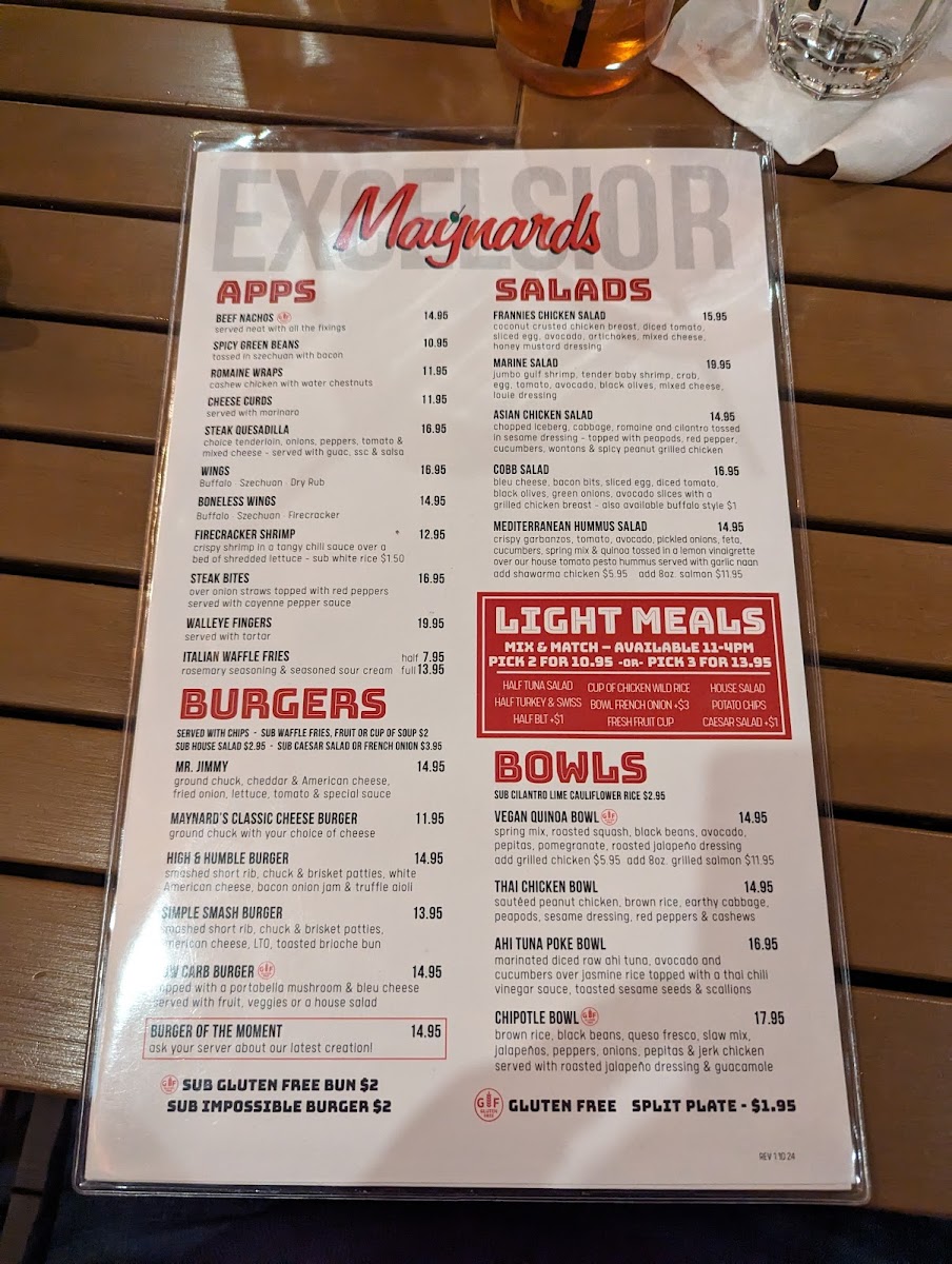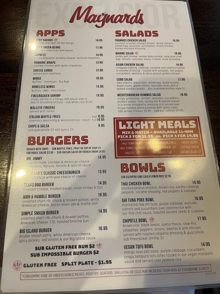 Located on the picturesque shores of Excelsior, Minnesota, Maynards offers a delightful menu that celebrates fresh ingredients and memorable flavors. Diners can indulge in dishes like the High and Humble burger, praised for its balanced flavors enhanced by bacon onion jam and truffle aioli. Customers rave about generous portions, with favorites including the buffalo chicken wrap, known for its bold taste and ample blue cheese.